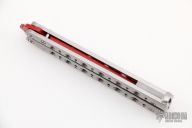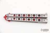Benchmade announces the Model 62T Balisong Trainer for 2012! The BM 62T knife features a 440C Red Cerakote training blade. The handles are skeletonized to reduce weight and sport a polished stainless steel finish. Sandwich style construction with stainless steel back spacers. The 62 Bali also features Zen pins and the classic T latch to secure the knife open and closed. Made in the USA. Features: Skeletonized Handles T Latch for Easy Open Unparalleled Benchmade Fit and Finish Comes with a Benchmade box. Has some light wear on the blade finish, otherwise excellent condition.