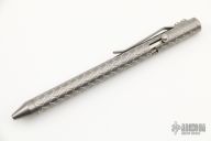 This unique bolt-action pen is made completely of titanium with the only exceptions being the ink cartridge, the spring, and the O-ring. Comes in original plastic storage tube. Excellent condition.