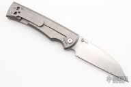 The Chaves Knives Sangre is part of the Ultramar series, a production line made by Reate to bring Ramon's exceptional custom designs to a wider audience. It comes equipped with an aggressive wharncliffe style blade that deploys effortlessly on ball bearings. An ergonomic titanium frame lock handle provides a comfortable grip and absolute blade lockup. The Sangre comes outfitted with a signature Chaves skull pocket clip for secure everyday carry.