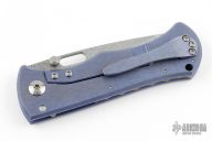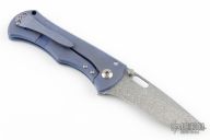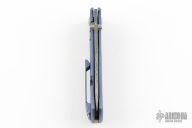 This Rostrum by John Gray features a black snow finished Magnacut blade with thumbstuds and thumbhole. The handle has a barked blue/bronze anodized titanium frame with a textured titanium backspacer and tip up stonewashed titanium clip. Has a stainless steel lockface insert and overtravel stop. Nice detent, lockup and blade seating. New from maker. Comes with COA dated 9-1-2024
