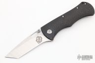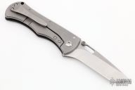 This Rostrum by John Gray features a satin/stonewash finished Magnacut blade with thumbstuds and thumbhole. The handle has a carbon fiber and bead blasted titanium frame with a textured titanium backspacer and tip up stonewashed titanium clip. Has a stainless steel lockface insert and overtravel stop. Nice detent, lockup and blade seating. New from maker at the 2022 NCKS.