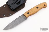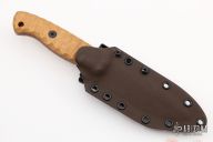 This Hunter by Frank Landau III features an acid washed blade with a textured spine, .157" blade stock and 1.204" blade depth, full tang construction. The handle textured vintage paper micarta scales with black screws. Comes with a C4 Industries kydex sheath with TekLok. New from maker!