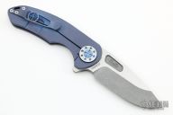 This F3 by Curtiss Knives features a stonewashed Magnacut blade with notched thumbrest and flipper. The handle has a diamond milled and anodized titanium frame with a matching tip up titanium clip. Satin stainless hardware. Rides on bearings, nice detent and lockup.  Comes with original box, zipper case, COA, patch and sticker pack. Excellent condition.