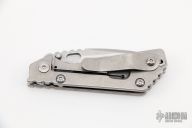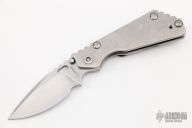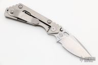 This PT by Mick Strider features a stonewashed blade with notched thumbrest and thumbhole. The handle has a stonewash titanium frame with matching tip up clip. Excellent Condition. Comes with a zippered case.
