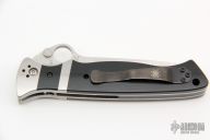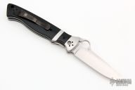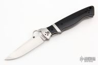 This Vallotton Sub-Hilt Auto by Spyderco was converted by Butch Vallotton, it features a satin finished S30V blade with a thumb-hole, dual thumb-studs, and notched thumb-rest. The handle has stainless steel bolsters, black G-10 scales, stainless steel liners, black G-10 backspacer, and 4-way reversible black stainless steel clip. Nice detent, lockup and blade seating. Excellent condition.  Comes with original box and papers.