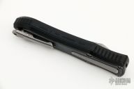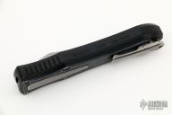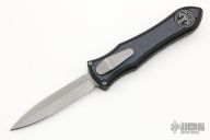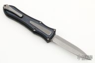 This knife is a Deadlock Model C by Grant and Gavin Hawk. It has a double-edged stonewashed blade. The handle has a black aluminum frame with stonewashed titanium overlays, a tip down spring clip, titanium. The thumb slide on the handle is also titanium and handle has titanium overlays. Includes a padded zippered case.  Excellent Condition.
