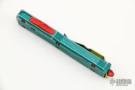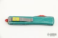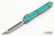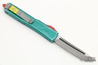 This Star Wars themed Ultratech by Microtech knives features a standard tanto blade with fullers and apocalyptic finish. The handle has a green battle worn aluminum frame with red and yellow hardware. Comes with original box and papers. Dated 03/2022 and s/n 5464. Excellent condition.