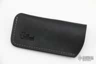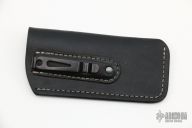 This Black leather sheath by SoulBound Leather is made from premium full grain English Bridle Leather from Wickett & Craig and has a stainless steel pocket clip. New from maker. 4.75" tall and 2" wide.