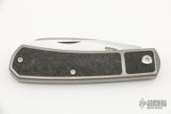 This Apache slipjoint by Enrique Pena features a satin finished blade with a nail nick. The handle has titanium covers with marbled carbon fiber inlays with a stainless steel spring. Includes a Pena X-Series padded box. New from maker.