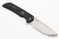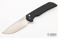 This Mordax by Pro-Tech is a Ferrum Forge design and features a stonewashed Magnacut blade. The handle has milled a black aluminum frame with black tip up stainless steel clip and green G-10 inlaid push button. Comes with original box and papers. Magnacut Blade. New from maker.