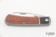 This Apache slipjoint by Enrique Pena features a satin finished blade with a nail nick. The handle has titanium covers with canvas micarta inlays with a stainless steel spring. Includes a Pena X-Series padded box. New from maker.