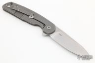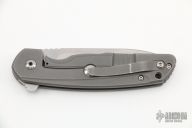 This AVO Mid-tech by Brad Southard features a stonewashed finished blade with notched thumbrest and flipper. The handle has a bead blasted titanium frame with matching tip up clip, titanium barrel spacers, lockbar stabilizer and pivot. Bearing Pivot. Has scuffs on the frame, excellent condition otherwise. Comes with original box.
