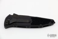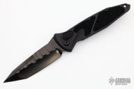 This Socom Elite Auto by Marfione Custom Knives and Borka Blades features a two-tone DLC stonewashed Borka pattern tanto blade with false top edge and notched thumbrest. The handle has a black aluminum frame with stingray skin inlays, DLC stainless steel hardware and tip down clip. Dated 01/2019 and #004. Nice action, lockup and blade seating. Comes with original box, zippered case and COA. Has a couple light scuffs, otherwise excellent condition.