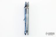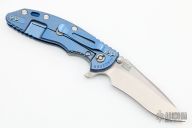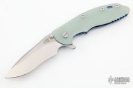 This XM-18 Flipper by Rick Hinderer Knives features a 3.5" stonewash finished blade, notched thumbrest and flipper, dual thumbstuds. The handle has a translucent green G-10 scale, and stonewashed blue titanium handle/clip. Clip can be mounted for tip up or down carry. Nice lockup, seating, and detent. Comes with original box and extra hardware. New condition.