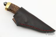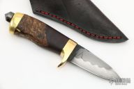 This Takedown EDC by Last Knives features a hand forged hand rub satin finished blade with a nice hamon, .172" blade stock and .809" blade depth, hidden tang construction. The handle has a brass guard and butt, two-tone Amboyna Burl wood grip. Comes with a black leather sheath and COA. New from maker.