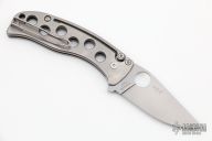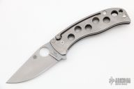 The PITS (Pie in the Sky) Folder is based on Mike Read's popular non-locking folder, which has been designed to comply with British knife laws. It has a full-flat ground N690Co steel clip point blade and precision-machined skeletonized titanium handle that aids in providing texture for grip. In addition, the handle features integral split spring arms to form the knife's unique slip-joint mechanism. Mike Read designed this knife to be a tough, hard-use folder and the combination of the lower blade guard with the integral spring act to prevent unintended closure. The PITS Folder includes Spyderco's deep carry wire clip for reversible tip-up carry. Includes the original box and papers.  Excellent Condition.