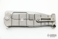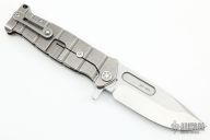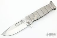 We believe we’ve come up with the best folding companion to the classic Marine Utility knife on the planet.  The knife is a perfect companion piece to the fixed “Fighter” and we call it the, “The Fighter Flipper.”  This is a unique mix of Titanium components with the very best blade of 3V.  This a big manly knife that’s as comfortable working, as it is cruising around town in your pocket.  There is so much going on with this knife It's hard to take in: from the retro milling on the handles, drop-point blade, integral pommel to the bearing pressed into the one-of-a-kind pocket clip.  There truly is NOTHING like the Fighter Flipper™ in the knife world.  You will want to chop, stab and smash something with this beast in your hand so proceed with caution… Comes with original box and hard case.  Excellent Condition.