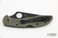 First introduced in 1990, the Spyderco Delica has been an EDC mainstay for three decades, and is commonly found clipped to the pocket of many knife nuts. Here at DLT Trading, we wanted to release what we see as the ultimate version of the Delica 4, combining the excellent ergos and lightweight overall package with a premium steel and an eye catching colorway. This dealer exclusive version of the Spyderco Delica 4 is dressed in OD Green FRN Handle scales with Bi-directional texturing supported by stainless steel liners, blacked out hardware and lockbar, and has a full flat ground CPM Cru-Wear blade coated in non-reflective titanium carbonitride (TiCN). The full flat ground blade on DLTs exclusive Cru-wear Delica 4 will cut longer and resist chips better than the standard VG-10, offering a supercharged performance upgrade for a benchmark EDC knife.