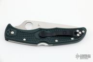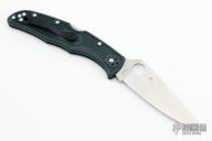 This Endura lock back folding knife by Spyderco features a ZDP-189 satin finish blade with a green FRN handle with a black stainless steel clip. Has a few light scratches, otherwise great condition.