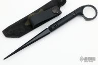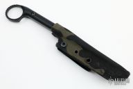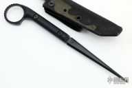 This Ringed Cardiac Spike by Half Face blades. Has a black cerakoted blade with black G-10 scales. Comes with kydex sheath with belt loop, covered in camo cloth. Excellent Condition.