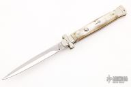 Angelo Campolin Sr. was born in 1923 in Maniago, Italy. He worked on perfecting his knife making skills before WWII and at this time made his first switchblades. After the war, in 1947 he started his company and made 30 stilettos with the marking “Angelo Campolin”. In the 1970’s Angelo’s son Gianni started to work in the company and they were specializing in folding hunting knives and also manual folding stilettos for the Robert Klaas company in Solingen Germany with their Kissing Cranes mark. In 2002 American switchblade collectors Dan Fuller, Brad West, and Tim Zinser were visiting Maniago and enjoying a few glasses of wine in a bar with Angelo Jr. and Gianni. The discussion was about a new name for some knife projects they wanted to pursue. It was Brad West that suggested the tang stamp should be AGA, for Angelo, Gianni, Angelo, thus representing three generations in the knife making business. The Campolins liked it and it stuck. In the beginning it was just a few items, but grew to the point where now there are 12 models and different scale options. The goal has been to offer quality switchblades using the old methods and traditions. Being a collector himself, Angelo Jr. knows what others like. The company headquarters has moved to Austria with production still in the original Maniago shop, as well as the others in Maniago that produce the knives for A.G.A. Campolin.