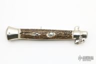 This is Ring Pull Auto by AGA Campolin with a mirror polished spear point blade with false top edge. Number 15 of just 30. Nickel silver bolsters and butt with stag scales, brass liners, stainless steel backspacer. Nice action, lockup and blade seating. Has a few light scratches, otherwise excellent condition.