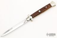 Angelo Campolin Sr. was born in 1923 in Maniago, Italy. He worked on perfecting his knife making skills before WWII and at this time made his first switchblades. After the war, in 1947 he started his company and made 30 stilettos with the marking “Angelo Campolin”. In the 1970’s Angelo’s son Gianni started to work in the company and they were specializing in folding hunting knives and also manual folding stilettos for the Robert Klaas company in Solingen Germany with their Kissing Cranes mark. In 2002 American switchblade collectors Dan Fuller, Brad West, and Tim Zinser were visiting Maniago and enjoying a few glasses of wine in a bar with Angelo Jr. and Gianni. The discussion was about a new name for some knife projects they wanted to pursue. It was Brad West that suggested the tang stamp should be AGA, for Angelo, Gianni, Angelo, thus representing three generations in the knife making business. The Campolins liked it and it stuck. In the beginning it was just a few items, but grew to the point where now there are 12 models and different scale options. The goal has been to offer quality switchblades using the old methods and traditions. Being a collector himself, Angelo Jr. knows what others like. The company headquarters has moved to Austria with production still in the original Maniago shop, as well as the others in Maniago that produce the knives for A.G.A. Campolin.