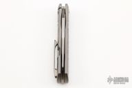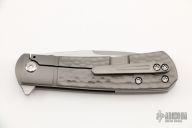 This Apache Front Flipper was designed by Enrique Pena, manufactured by Reate Knives and features Lee Williams Kickstop.  This knife features a satin finished blade with notched thumbrest and flipper tab.  The handle has a jigged titanium frame with a titanium backspacer and a titanium tip up pocket clip.  The knife opens with the use of Lee Williams' Kick Stop flipper.  Includes a Pena X-Series padded box. Excellent condition.