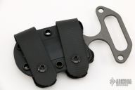 The Push Dagger by RMJ Tactical features a tungsten cerakoted double edged blade composed of Nitro-Z steel, .131" Blade Stock and .956" Blade Depth. Full tang construction. Comes with a kydex sheath with dual IWB loops. Original box and papers included. 2.25" Blade 4.75" Overall 2" Handle. Excellent condition.