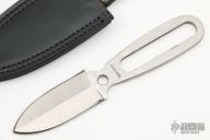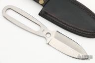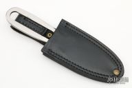 This Sheath Dagger by A. Daniel Valois features a double edged satin finish blade with .163" blade stock, 1.170" blade depth, full tang construction. Satin finished handle. Includes a black leather sheath. New from the maker's personal estate collection. Light scratches on blade and handle.