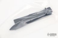 This handmade Bayonet by A. Daniel Valois features a black coated, partially serrated blade 5/32" blade stock, 5/8" blade depth. Mounts to any rifle barrel with a hose/tube clamp. Wing nut closure. New from the makers estate.