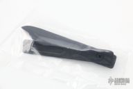 This handmade Bayonet by A. Daniel Valois features a black coated, partially serrated blade 5/32" blade stock, 5/8" blade depth. Mounts to any rifle barrel with a hose/tube clamp. Wing nut closure. New from the makers estate.