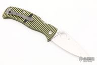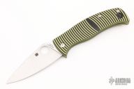 This Caribbean Pin by Spyderco features a satin finished blade with thumbhole and a notched thumbrest, has LC200N blade steel. the handle has milled black/yellow G-10 scales, stainless steel liners, tip up bead blasted stainless steel clip, left/right reversible. Lanyard hole. Comes with original box and papers. Excellent condition.