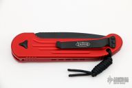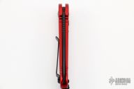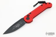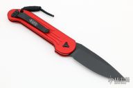 This LUDT by Microtech features a black finished blade. The handle has a red aluminum frame with black hardware and tip down clip. Comes with original box and papers. Dated 11/2022 and s/n 28773. Excellent condition.