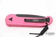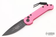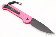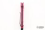 This LUDT by Microtech features a black finished blade. The handle has a pink aluminum frame with black hardware and tip down clip. Comes with original box and papers. Dated 11/2022 and s/n 28823. Excellent condition.