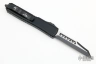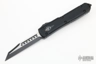 This Ultratech by Microtech Knives features a stonewashed Warhound blade with satin flats, black bevels and false top edge. The handle has a black aluminum frame with tip down black stainless steel clip and hardware. Comes with original box and papers. 11/2022, S/N 949. Excellent condition.