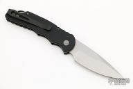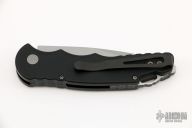 This TR-5 by Pro-Tech Knives features a stonewashed spear point blade. The handle has a black aluminum handle with stainless steel backspacer with lanyard hole, tip up blade stainless steel clip. Comes with original box and papers. Excellent condition.