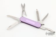 This Victorinox Alox Vagabond features satin finished tools, and a purple handle. Six tools total, has a couple light scuffs, great condition otherwise.