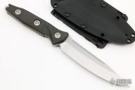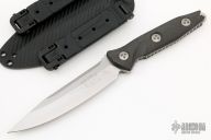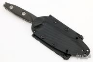 This Socom Alpha by Microtech Knives features a stonewash finished blade with notched thumbrest. .164" blade stock and 1.12" blade depth, full tang construction. The handle has black G-10 scales. The tang is notched all around and there is a lanyard hole at the butt. Comes with a kydex sheath.  Dated 12/2016. S/N 00079. Excellent condition.