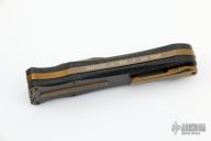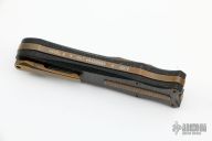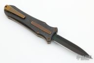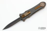 This knife is a Deadlock Model by Grant and Gavin Hawk. It has a black dagger blade. The handle has a lightning strike carbon fiber scales, anodized and tumbled titanium frame, tip down spring clip, and thumb slide. Comes with Grant and Gavin Hawk set out to create a double action OTF with no blade play.... They did it, NO blade play. Comes with a drawstring bag, tool, and lube. Excellent condition.