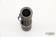 This classy light from The Barrel Flashlight Company features a bead blasted, titanium body and anodized blue ring/accents. From the makers site: Barrel Flashlight Co. flashlights are proudly made in USA. Our lights are turned from solid grade 5 titanium round bar. About 1000 lumens on high depending on LED’s selected Triple LED output with builds available with Nichia 219C 4K 90+CRI or Cree XP-L HI 5K. The “ pill “ that houses the LED’s and driver is machined from solid copper for optimum performance and heat transfer. Light measures 3.5 inches long and just under 1 inch in diameter. Light runs on an Efest high capacity 700mAh 16340 unprotected button top rechargeable IMR battery. Light comes with a titanium deep carry pocket clip and titanium screws for comfortable carry and superior strength. Interchangeable barrel rings, barrels ( inner sleeve), clips, and screws to customize your light and ability to match your EDC. Light is built with one of the most advanced drivers on the market: the fully programmable H17F with battery monitoring. The H17F comes in a very user-friendly set default of moonlight, low, medium, and high. Rear “ clicky “ button cycles light through modes. For the avid flashlight hobbyists , a secret hidden mode can be entered to program the light. Light is water resistant. Light tailstands very well. This particular piece is in excellent condition. Comes with original box.