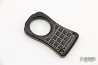 This one-finger knuck from Microtech knives is made from a solid piece of 0.38" thick titanium has a 1" finger hole. Features a DLC tumbled finish and a grid pattern design.