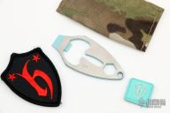 Horton/Stout ClamMaster5000. The most elegant bottle opener/pry tool/key fob you'll find! Tumbled titanium and Tiffany finish. Excellent condition. Comes with SOE wallet and two patches.