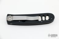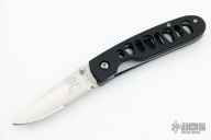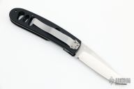 This knife by Abel Fishing Reels features a satin finished drop point blade with partial serrations and a single thumb stud. The knife is fully made in the USA of high carbon, high chrome, 154CM knife grade stainless steel. The blade is hardened to 60RC; the handle or frame of the knife is cold finished 6061-T6 aircraft quality aluminum. Bead blasted stainless steel tip down pocket clip. Excellent Condition.