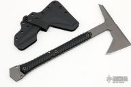RMJ teamed up with Bawidamann Blades in 2012 to create a lightweight tomahawk that is fast in the hand and different than other tomahawks; thus the Ragnarok was born. Now after several years of making the Ragnarok for Bawidamann Blades, RMJ is now offering a production version. The RMJ Ragnarok is the same tomahawk with angled and textured G10 handles, as well as a Tungsten Gray Cerakote Finish.