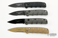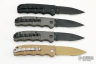 This Set of four Automat Kalashnikov 74 by Boker Plus. One of the grey ones is no longer an auto and only opens manually. Excellent condition.