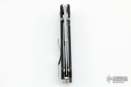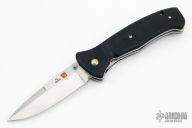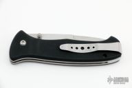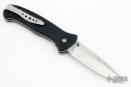 This SERE 2000 Linerlock Folder has been converted to a scale release D/A by Butch Vallotton. It has a satin finished spear point blade with dual thumb studs and a false top edge. Handle is black G10 over stainless steel liners, black stainless steel tip up clip, and lanyard hole. Comes with a nylon belt sheath. Has a few light scratches, otherwise excellent condition.
