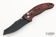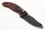 This Elishewitz design features a black recurve blade. The handle has black/grey/red G-10 frame with safety. Has black stainless steel pocket clip and lanyard at the butt. Excellent condition.