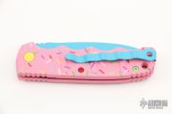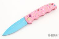 Have you ever been unfortunate enough to have to share a donut? Your plight only gets worse when you find you have to cover your high-speed, low-drag, modified, custom, mirror-edged piece of pocket jewelry in sticky sweetness. What you need is a knife designed from the ground up to go to war with a donut. And although its path to existence was unorthodox, the Dessert Warrior is here! This automatic will snap open before anyone can take more than their half of the donut. The handle is bright pink with sprinkles, and the blade has a candy blue finish, making the knife blend in with the pretty pastries of the shop. Gone are the days of not having the right tool for the job!