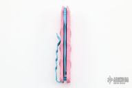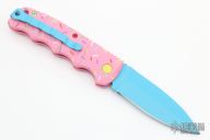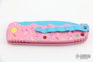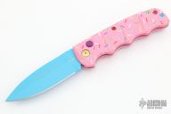 Have you ever been unfortunate enough to have to share a donut? Your plight only gets worse when you find you have to cover your high-speed, low-drag, modified, custom, mirror-edged piece of pocket jewelry in sticky sweetness. What you need is a knife designed from the ground up to go to war with a donut. And although its path to existence was unorthodox, the Dessert Warrior is here! This automatic will snap open before anyone can take more than their half of the donut. The handle is bright pink with sprinkles, and the blade has a candy blue finish, making the knife blend in with the pretty pastries of the shop. Gone are the days of not having the right tool for the job!